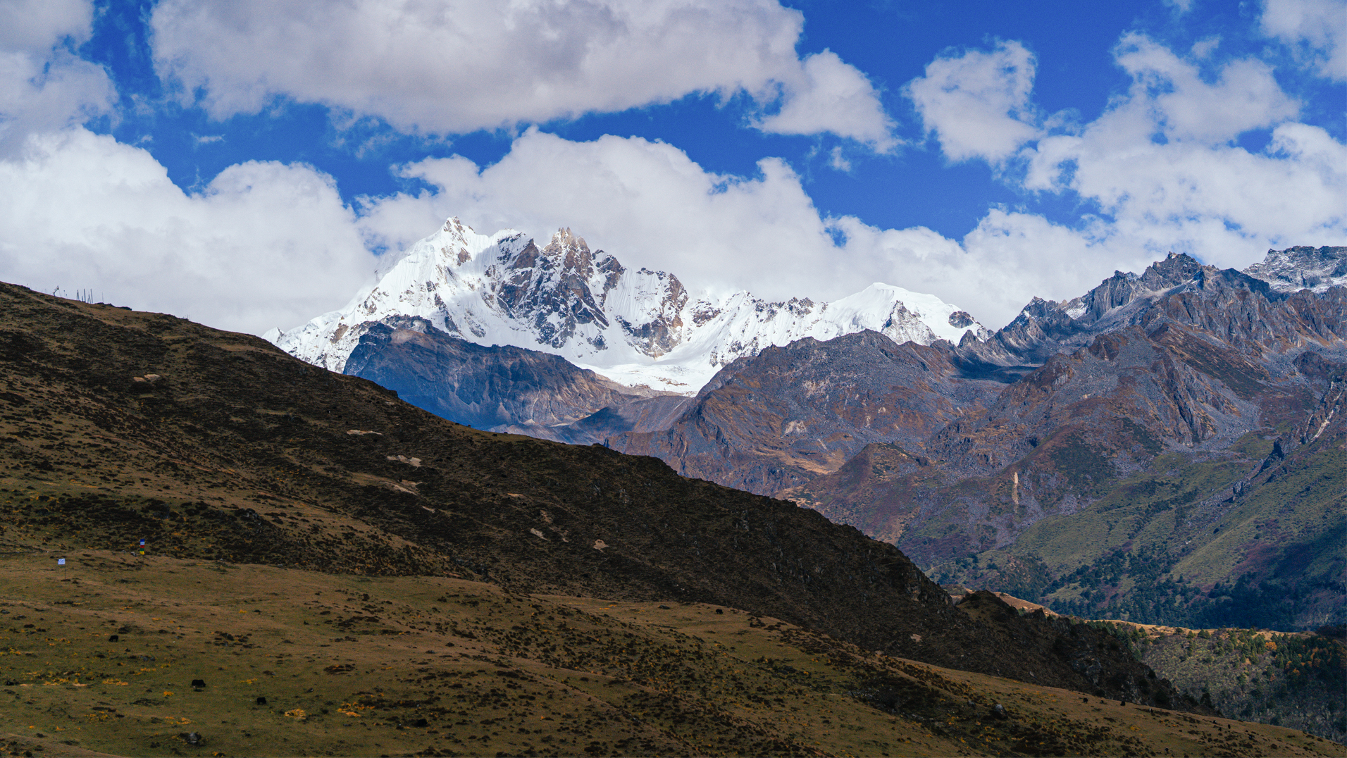 Broad yak pastures can be seen along