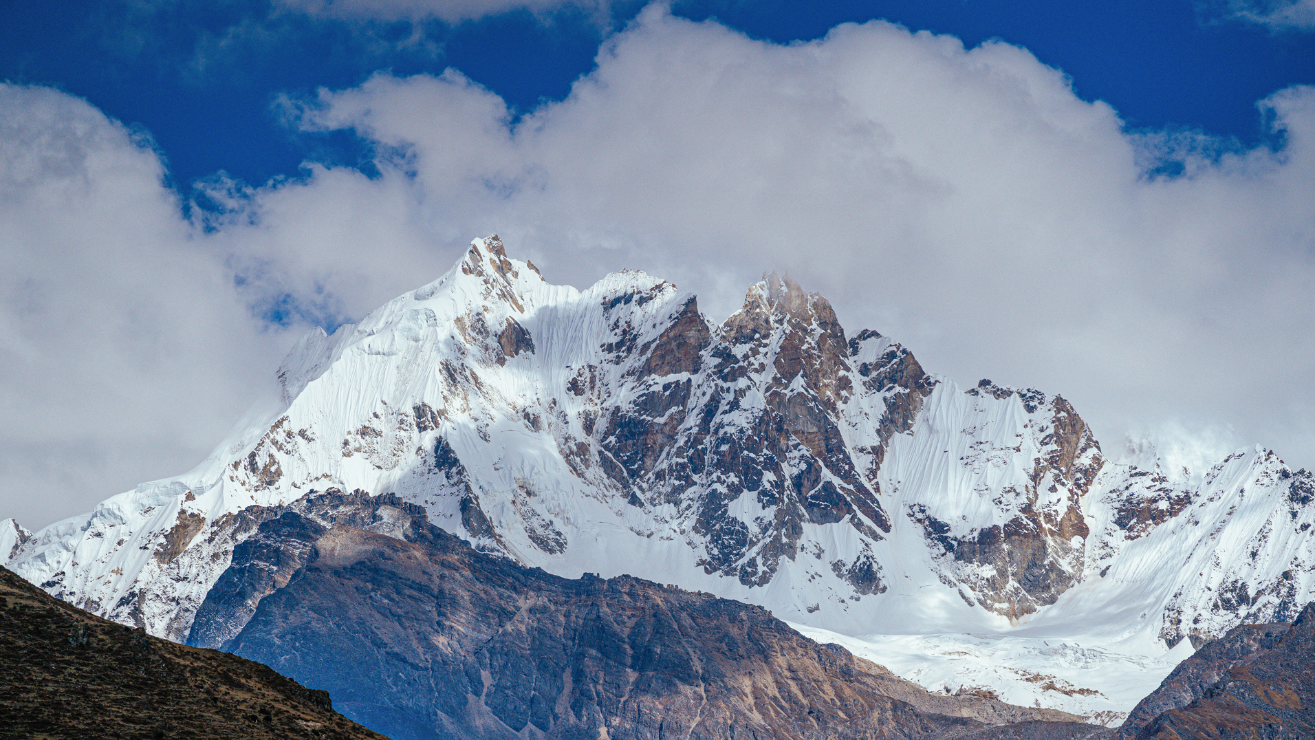 towards Mount Jomolhari and its subsidiary to the west, Jichu Drake to the north and unclaimed summits and ridges to the east.
